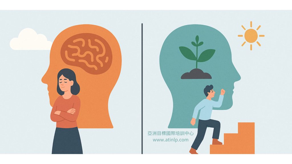 錨定正面狀態:NLP 使用「心錨」技巧,將正面情緒與特定觸發因素連結,強化成長型心態(Bandler, 1985)。