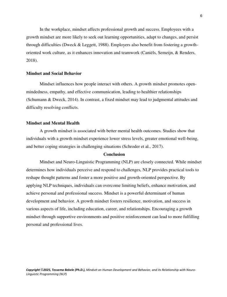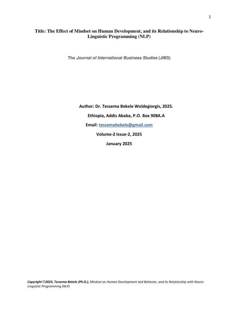Dr. Tessema Bekele Woldegiorgis,2025,〈The Effect of Mindset on Human Development, and its Relationship to Neuro-Linguistic Programming (NLP)〉《The Journal of International Business Studies (JIBS)》